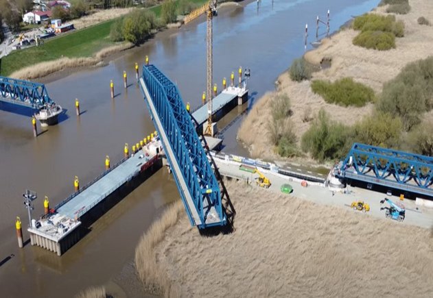 De nieuwe brug vervangt het vorige exemplaar dat in 2015 zwaar beschadigd raakte na een aanvaring met een schip. Met haar unieke hef- en draaimechanisme is de Friesenbrücke de grootste brug van dit type in Europa. Naast treinverkeer biedt de brug straks ook ruimte voor fietsers en voetgangers.